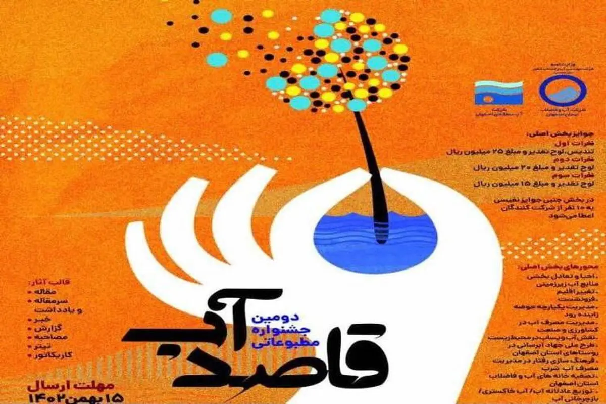 با همکاری مشترک شرکت آبفای استان و آب منطقه ای اصفهان، دومین جشنواره مطبوعاتی قاصد آب برگزار می شود.